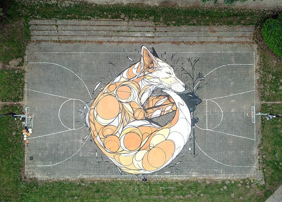Deuxième réalisation du genre du pays, en 2018, il n’aura fallu que 2 jours à l’artiste DZIA pour realiser ce renard endormi sur le terrain de l’Urban Sports Stadium De Warande.